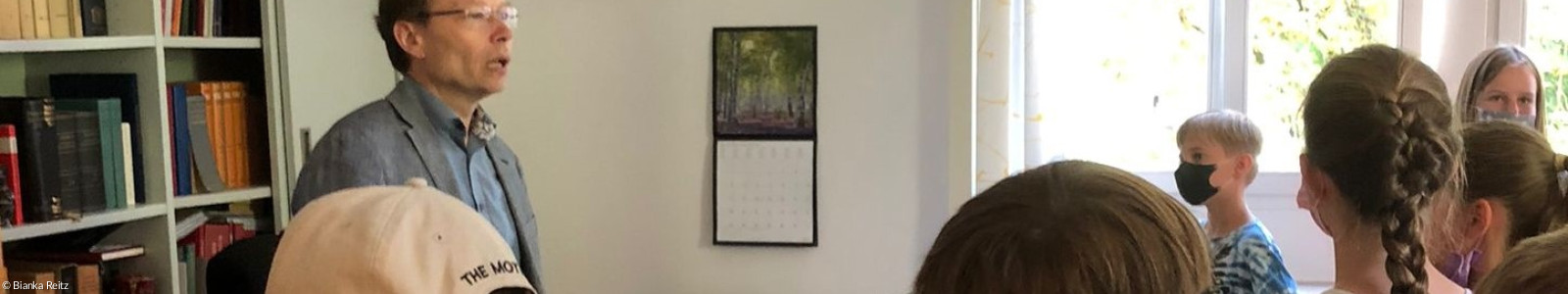 SchülerInnen der fünften Klasse des Dag-Hammarskjöld-Gymnasium stürmen das Dekanat. Staunend und voller Fragen begegnen Sie Dekan Slenczka. Was tut ein Dekan den ganzen Tag? Wie sieht es in so einem Dekanat eigentlich aus? Und was gibt es noch so in einer Kirche zu entdecken?