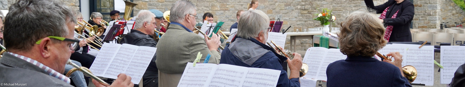 Der Bezirksposaunenchor Würzburg setzt sich zusammen aus Bläsern aller Posaunenchöre des ev.-luth. Dekanats Würzburg. Er hatte heuer am Landesposaunentag in Nürnberg teilnehmen sollen, jedoch ist dieser um ein Jahr verschoben worden. Aus diesem Grund erging die Auflage an alle teil-nehmenden Chöre, bis dahin 101 Konzerte zu spielen. Der Bläsergottesdienst auf dem Heuchelhof war eines davon, und der Bezirksposaunenchor entledigte sich seiner Aufgabe mit Bravour: ge-konnt begleitete er konventionelle und moderne Kirchenlieder, stellte Um Himmels Willen, das neue Mottolied für den Landesposaunentag, vor und begeisterte zum Schluss alle Zuhörer mit Zu-gaben wie Gospel, Jazz und Swing.