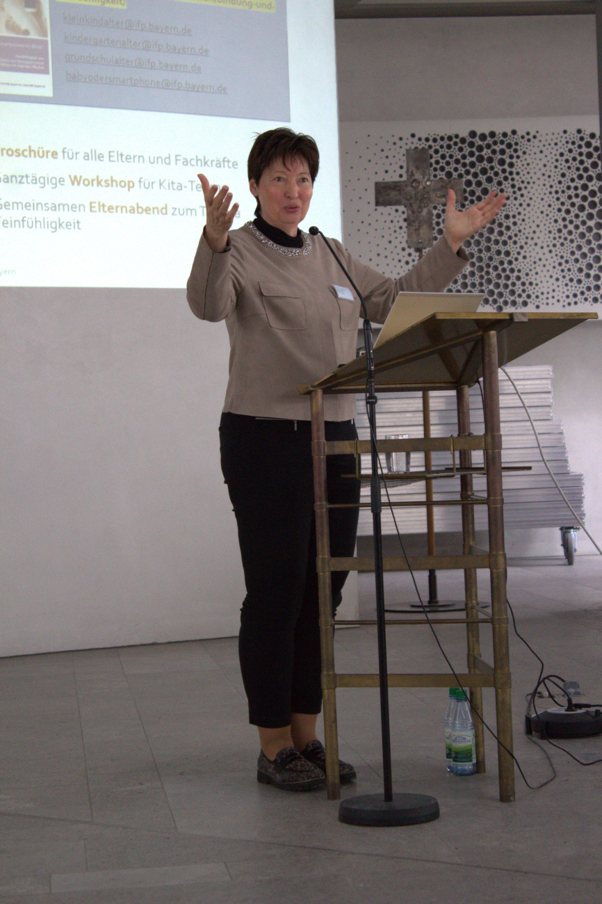Im Mittelpunkt standen die Impulse von Prof. Fabienne Becker-Stoll, die die zentrale Rolle von Beziehungen für gelingende Bildungsprozesse hervorhob. Die Referentin zählt zu den prägenden Stimmen der frühkindlichen Bildungsforschung in Deutschland. Ihre Arbeit zeigt, wie entscheidend Bindung und Beziehung für die Entwicklung von Kindern sind: Sie lernen am besten, wenn sie sich sicher, gesehen und emotional unterstützt fühlen. Ein Schwerpunkt liegt auf der Qualität von Interaktionen zwischen Fachkräften und Kindern – also darauf, wie feinfühlig, zugewandt und verlässlich Erwachsene reagieren. „Erziehende sollen Mut haben zur Zärtlichkeit“, so die Referentin, „Stärkung und Zuwendung außerhalb der Familie machen Kinder zu selbstständigen und gesellschaftsfähigen Menschen“.
