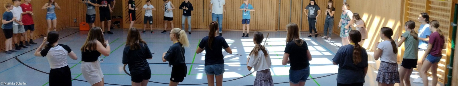 Der Reisebus fuhr mit 35 hochmotivierten Konfis Richtung Schullandheim Rappershausen in der Röhn. Dort angekommen wurden sie vom Team begrüßt, eingecheckt und mit einem Konfi-Camp-Armband versehen, sodass allen unmittelbar klar wurde: wir sind jetzt am Anfang, am Start unserer Konfi-Zeit.