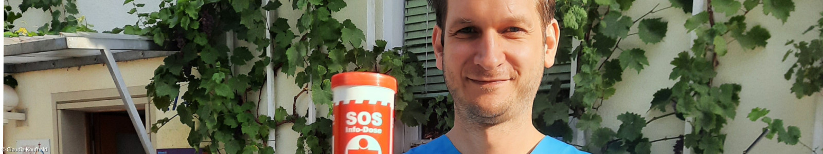 Frank Ostermann von der Ev. Sozialstation mit SOS-Info-Dose
